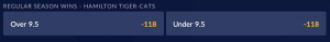 The Tiger-Cats are the favourites to win the Grey Cup at +293 at Sports Interaction. This is essentially the same team from 2019, so with the roster fully healthy they should be able to win the East again, although their 9.5 win total is the highest in the league. Regardless of who starts at quarterback to open the season, Masoli or Evans, teams will struggle to contain this offence.