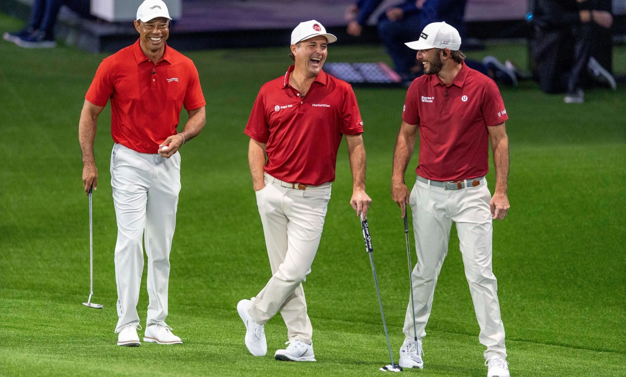 First Half: After a sassy walkout to “Eye of the Tiger” the match commenced with Woods attempting to set an aggressive tone by utilizing “The Hammer” on the opening hole, a strategic move that doubles the hole’s value. However, both teams ended up splitting the hole, resulting in no advantage gained. As the match progressed, Los Angeles Golf Club capitalized on consistent play and fewer errors, building a substantial lead by the halfway mark.