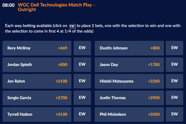 WGC-Dell Match Play Odds