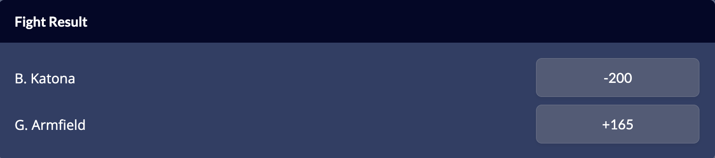 Katona is a -200 favourite to win on the MMA odds and Armfield is a +165 underdog.