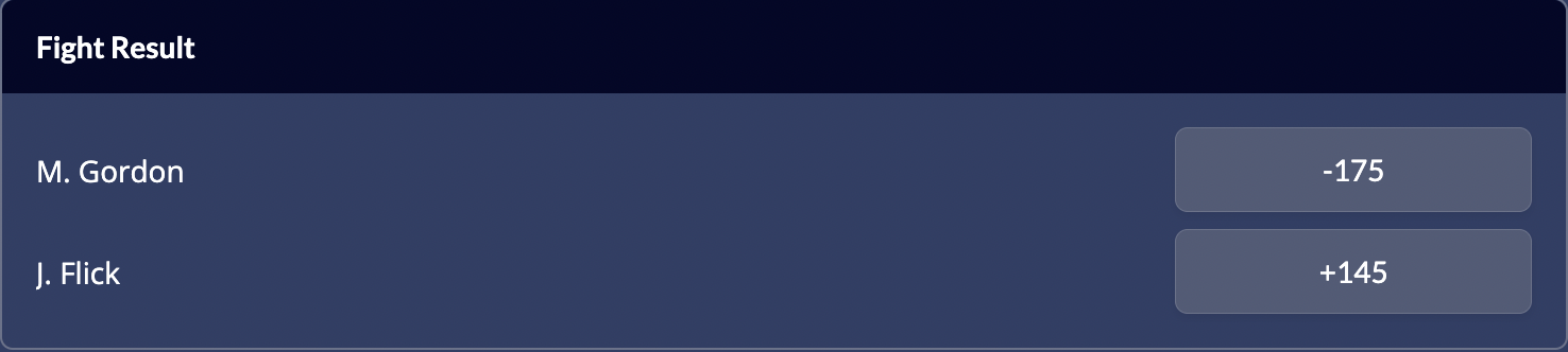 Gordon opened as a -175 favourite on the MMA odds and Flick at +145.