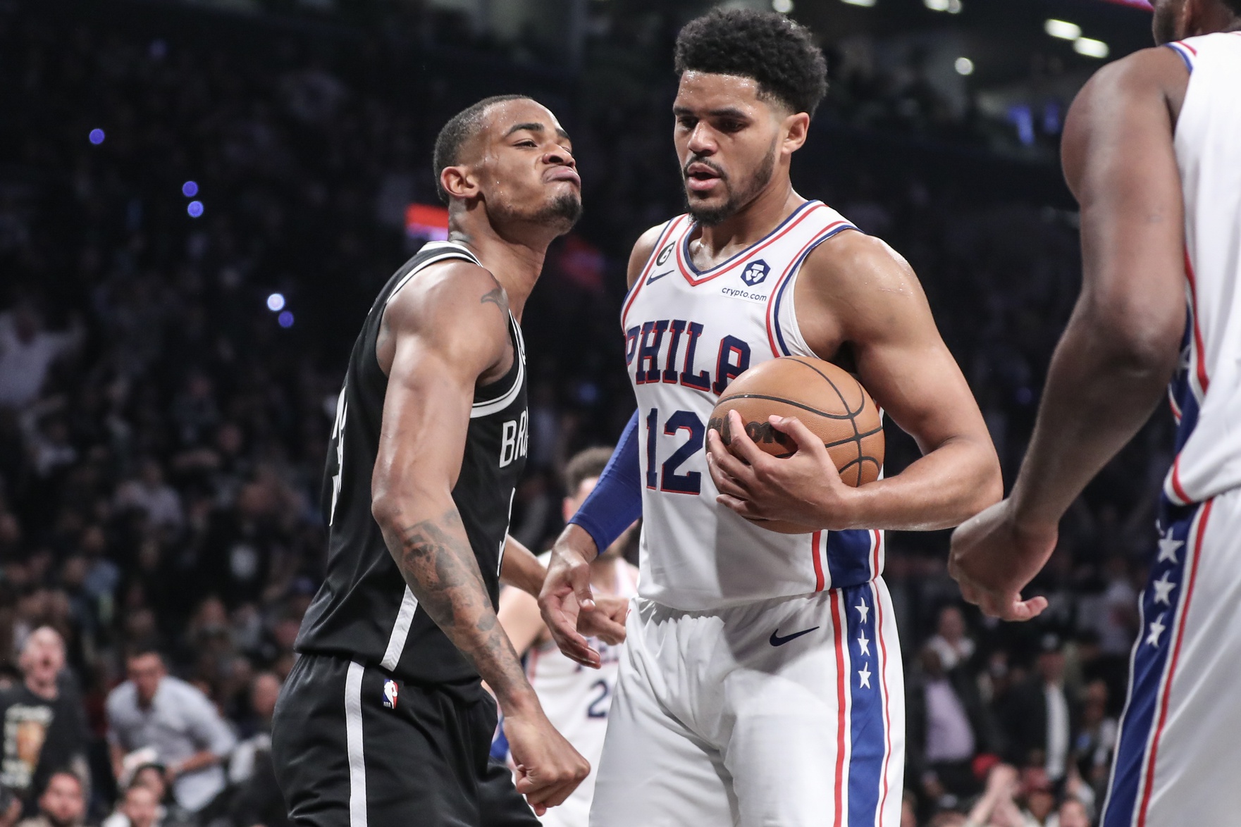 Even under those circumstances, it was a chippy affair. Look no further than Harden’s ejection for a flagrant foul in the second half when driving with the ball (there was non-ejection for something Embiid did that looked worse). Much like we said in our Game 2 article, the 76ers have the kind of depth to get them out of jams when either their best players aren’t up to par, or in this case unavailable. In a reversal of the first two contests when Brooklyn came out fairly strong before allowing the home team to find its groove, it was the 76ers who set the tone. Tyrese Maxey had his second consecutive strong outing (25 points) and De’Anthony Melton produced his most important game of the series so far with 13 points off the bench and three steals. Embiid was not so much a factor on offence (14 points) but he corralled 14 boards and had two blocks. The second was a brilliant, potentially iconic one that preserved a precious two-point lead with eight seconds left.