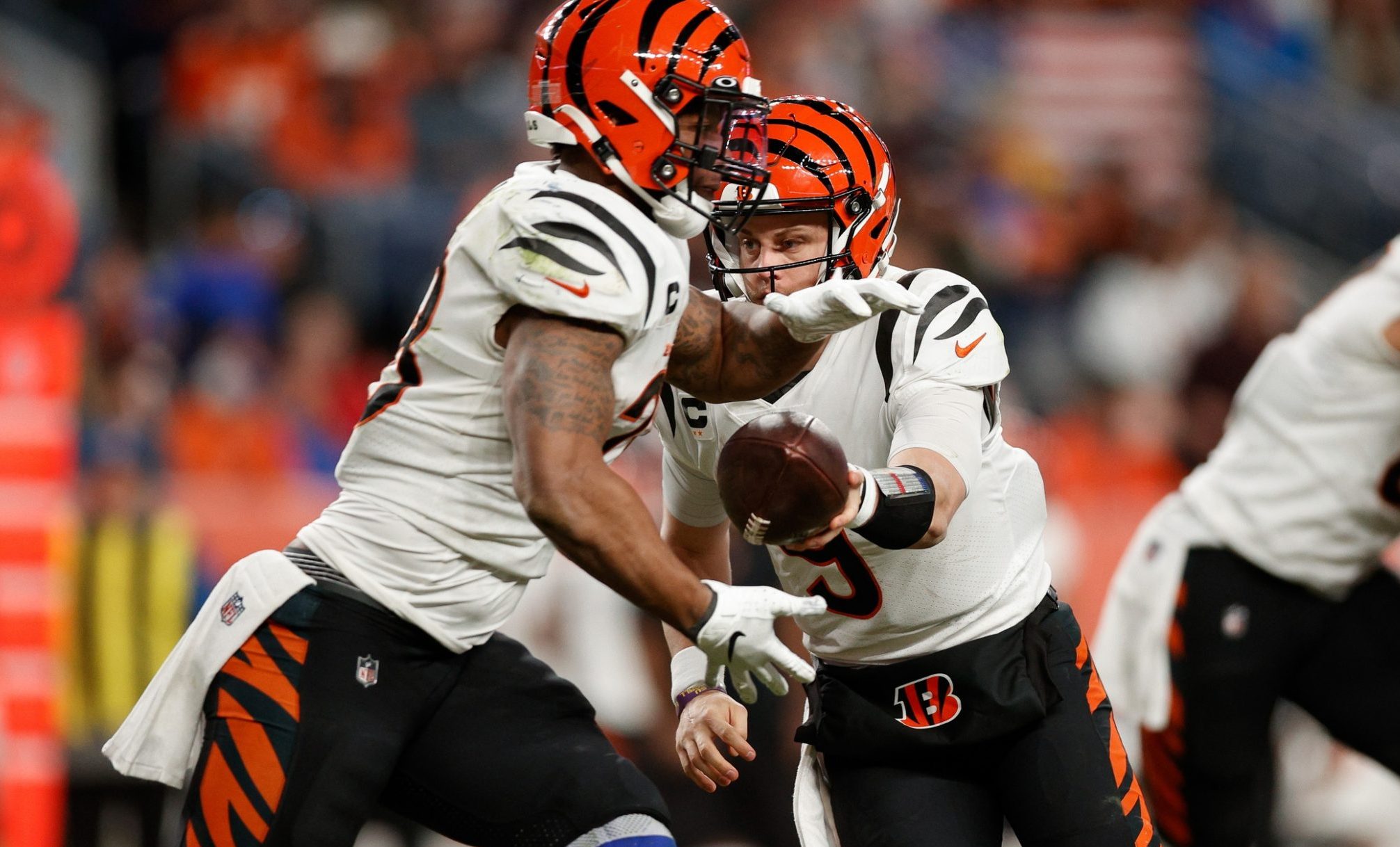 A pair of 400-yard, four-touchdown wins served asa statement for Joe Burrow and the Bengals and started chatter about the sophomore quarterback entering the MVP conversation. Burrow’s now fifth in the NFL with 4,611 passing yards and has a dynamic chemistry with rookie Ja’Marr Chase. The 2021 fifth-overall pick racked up 266 receiving yards and three touchdowns in last Sunday’s win over Kansas City and broke the record for most receiving yards by a rookie. Chase has 1,429 yards and 13 scores, both rank in the top four among NFL receivers.