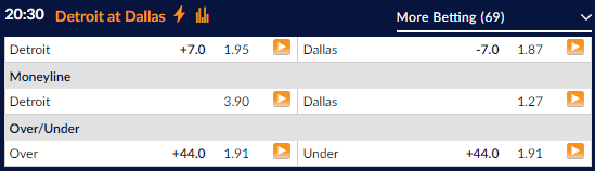 Cowboys vs. Lions Point Spread: Monday Night Football
