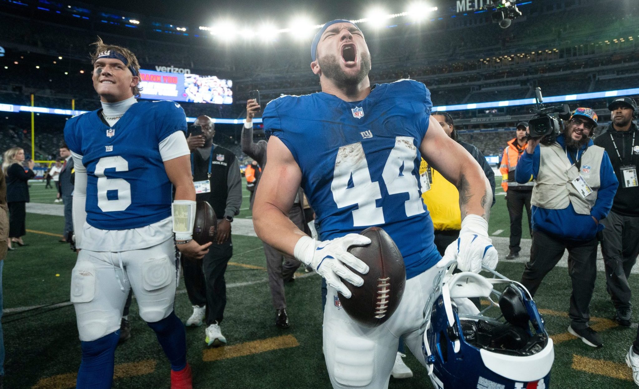 However, with two wins in three starts, a back who absorbs contact at the rate of Skattebo in his backfield, and an improving defence – led by Brian Burns and his seven sacks – on the other side, New York fans can at least be hopeful after the miserable start with Russell Wilson under center.