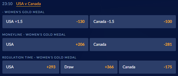 Canada vs. United States Olympic Gold Medal Game Odds