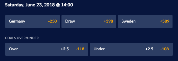 The Swedes used a 4-4-2 formation against South Korea but will likely move to a lineup with just one striker against Germany. Bettors should expect to see Marcus Berg as the lone forward up top. He’s priced at +299 to score at any time during the match at Sports Interaction.