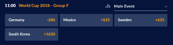 Odds to advance: Germany (-1200), Mexico (+110), Sweden (+125), South Korea (+250)