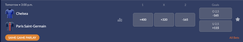 Since Saturday, Chelsea’s odds have lengthened from +380 to +400, indicating further separation in the market. Meanwhile, PSG remain steady at -165, reflecting continued confidence in the French giants. The draw result has tightened slightly to +320, possibly due to expectations that Chelsea may look to keep things tight early.