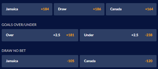 Sports Interaction Odds: Canada +163, Jamaica +184, Draw +187