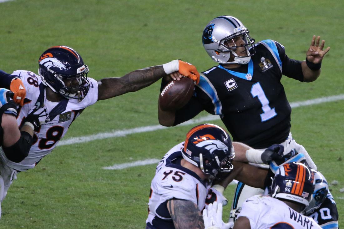 The Broncos won that Super Bowl really in spite of quarterback Peyton Manning, who was just 13-for-23 passing for 141 yards and an interception. The Broncos’ 194 total yards offense were the fewest ever by a Super Bowl winner. The reason Denver won that game was the play of outside linebacker Von Miller, who had six tackles, 2.5 sacks and those two forced fumbles by Newton. Miller was deservedly named Super Bowl MVP.