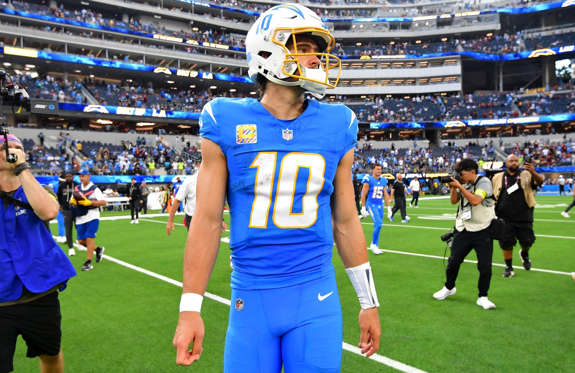 While Justin Herbert had two interceptions in last week’s beatdown loss against the Colts, it’s hard to blame him for the result. Herbert threw for 420 yards and three TDs on 55 pass attempts, the fourth time this season he’s surpassed 260 passing yards in a game.
